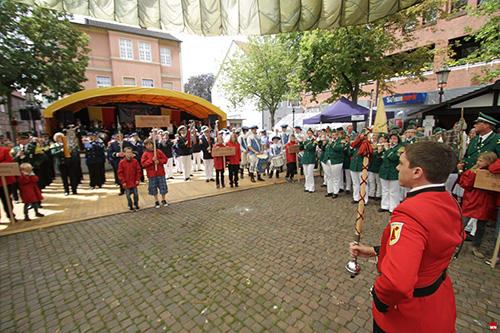 Der Sonntag hingegen war ein voller Erfolg. Das Fest begann am Sonntagmorgen unter dem Lastenfallschirm auf dem Marktplatz mit einer hl. Messe, die eindrucksvoll durch unseren „Haus- und Hofpfarrer“ Markus Müller zelebriert und durch die beiden Musikzüge musikalisch gestaltet wurde. Nach der Begrüßung und Eröffnung durch Bürgermeister Richard Borgmann hatten die auswärtigen Musikzüge Gelegenheit, ihr musikalisches Können auf der Bühne unter Beweis zu stellen. Das „Konzert“ eröffneten unsere Musikfreunde von der Blaskapelle Selm. Danach ging es weiter mit den Spielmannszügen aus Ascheberg, Drensteinfurt, Herbern, Seppenrade und Werne. Mit von der Partie waren auch der Trommelzug der Maximilian-Kolbe-Schule aus Nordkirchen sowie der Fanfarenzug Buldern und das Musikcorps Blau-Weiß Hagen-Haspe. Zum großen Festumzug durch die Lüdinghauser Altstadt säumten zahlreiche Zuschauer die Straßen, um den Festumzug mitzuverfolgen.